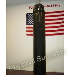 this bag was the least expensive leather bag I found, it comes with the hanging chains and a swivel. The bag shipped the following business day via Fedex ground from NJ. In order to fill the bag I visited a local thrift store and asked for non salable clothes that would be sent to a shredder for recycling, I filled four contractor style garbage bags with clothes brought it home and laundered everything after that I cut the clothes into 4'' strips and removed all buttons and zippers to prevent from damaging the bag. Finally I filled the bag by throwing a arm full of scraps at a time and pressing it down as tightly as possible with a broom stick, the filling process took about 3 hours and caused me to have three nice blisters.Muay Thai Heavy Punching And Kicking Bag-unfilled (empty) Overview